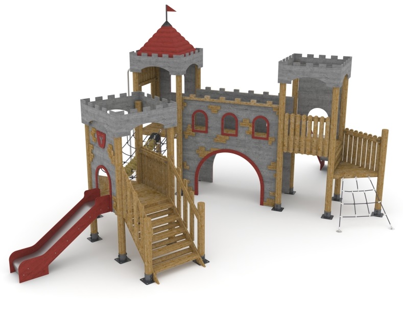 Complex joaca din Lemn cu tobogan de INOX CASTEL 3009