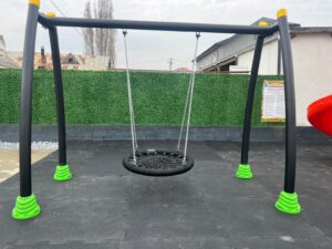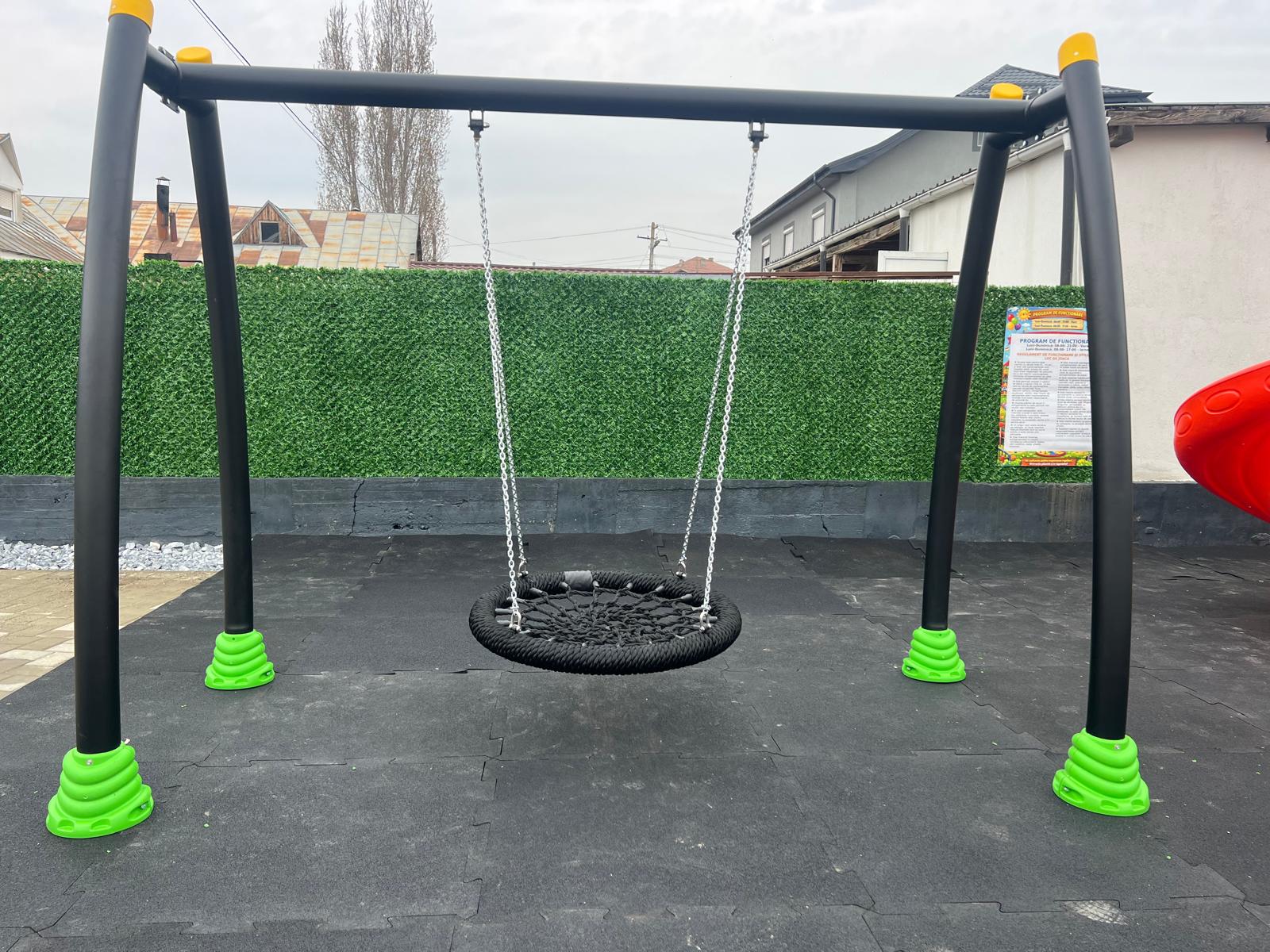 • Balansoarul cuib de pasăre curbat; este compus din 4 bucăți de țevi curbate de 2.4 m lungime și Ø 114 mm pentru stâlpii laterali ai balansoarului, 1 buc. țeavă mijlocie de 3 m lungime și Ø 114 mm și 1 buc. scaun balansoar tip cuib de pasăre.