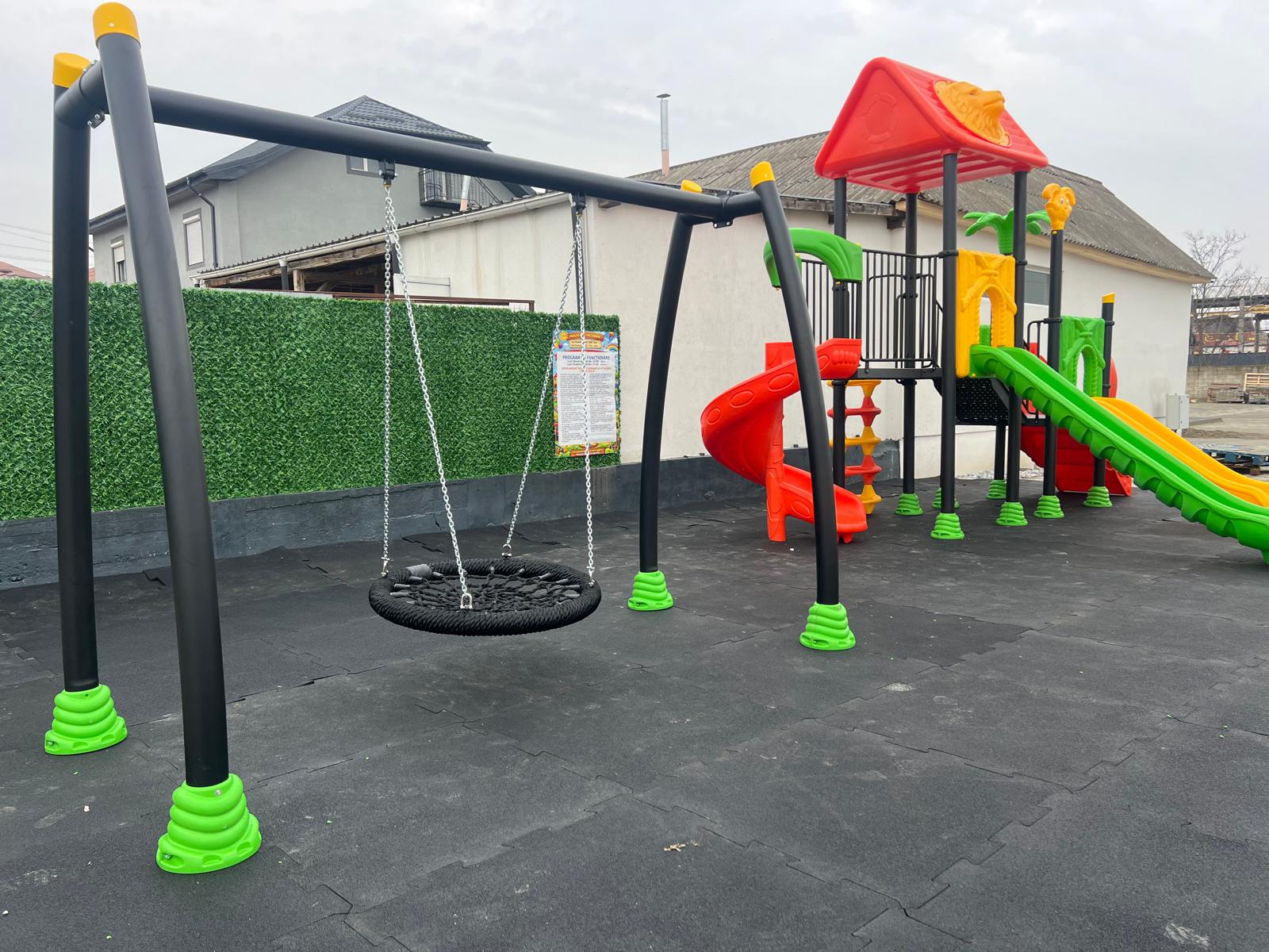 Oferim o gamă variată de echipamente de joacă, de la tobogane clasice și leagăne, până la structuri complexe de cățărare și zone interactive. Toate produsele noastre sunt proiectate cu grijă pentru siguranță, durabilitate și stimulare creativă, asigurându-ne că fiecare moment petrecut în locurile noastre de joacă este unul de neuitat pentru cei mici.