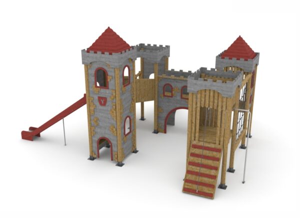 Complex joaca din Lemn cu tobogan de INOX CASTEL 4001