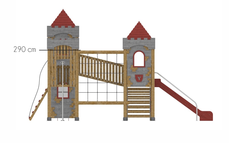 Acoperisul, panourile decorative si lateraleler toboganelor sunt din HDPE. Partea alunecoasa a toboganelor e realizata din tabla din Inox.